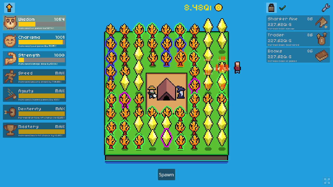 One note: could you make the game remember which skill you're improving after loading? Currently it seems to reset to wisdom, which is quite possible to miss. I had to reload a couple of time due to the game seemingly slowing down or at least getting visually choppy (ha ha) after a long time spent on the same "session".